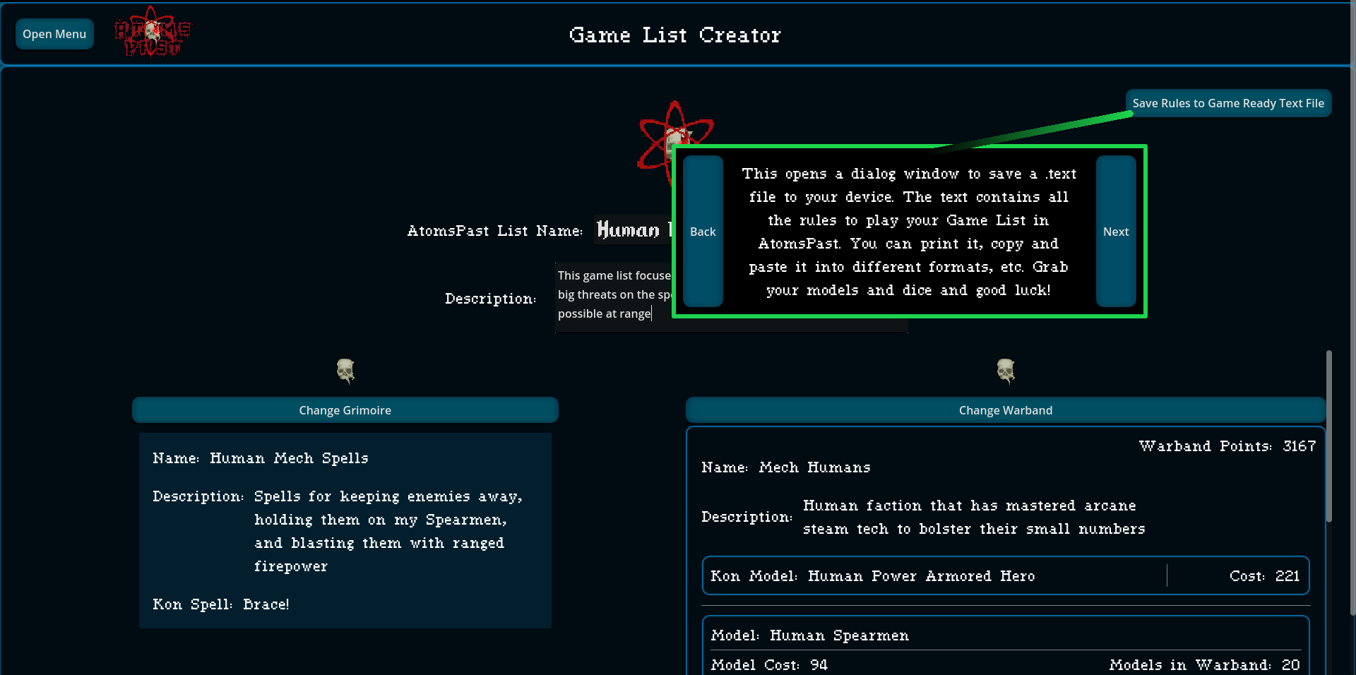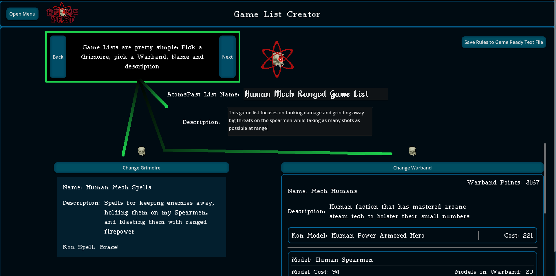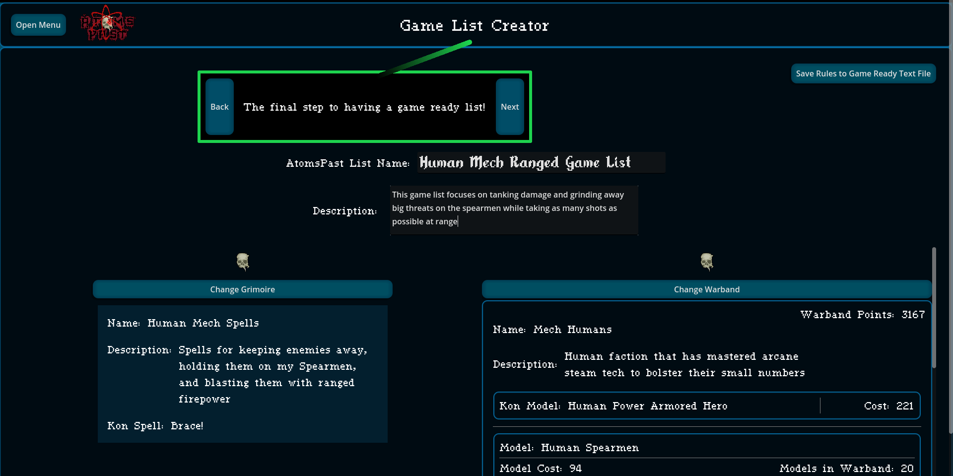 When a Warband and a Grimoire love each other very much, they make a Game List